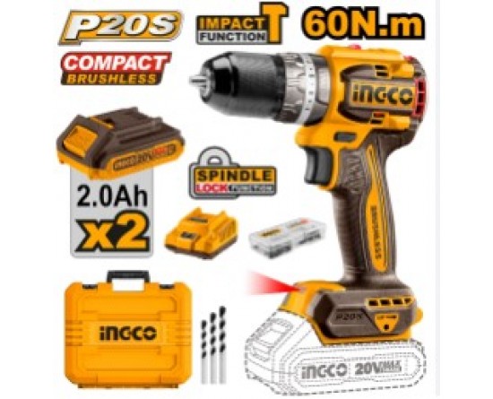 Aparafusadora c/percussão Ingco 66Nm Brushless 2 baterias 2.0Ah c/malaMotor: BrushlessVoltagem: 20VV.....