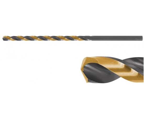 Broca helicoidal longa HSS M2 6,0 mm em metal preto e douradoBroca helicoidal longa HSS M2 6,0 mm em.....