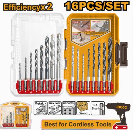 Conjunto de 16 brocas.Uso: metal, cimento e madeiraGancho hexagonal6 pontas de metal2,3,4,5,6,8 mm5 .....