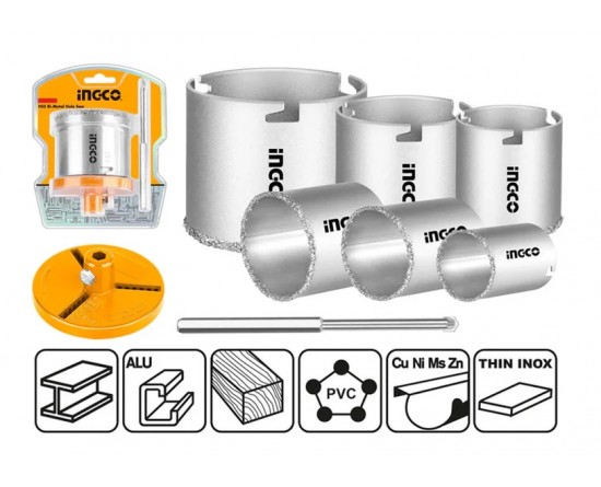 Tamanhos de serra copo: 33 mm, 53 mm, 73 mm, 83 mm