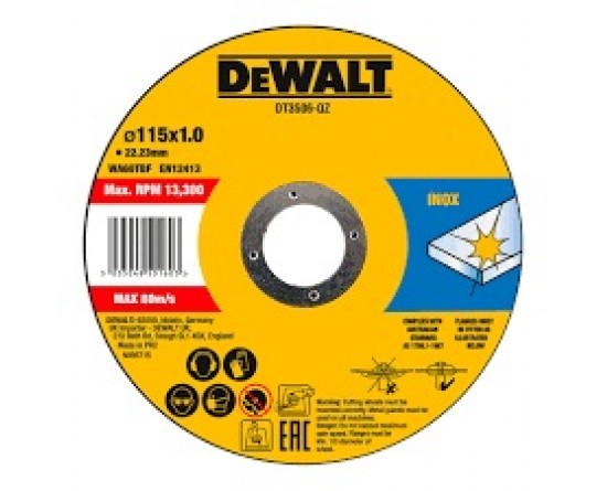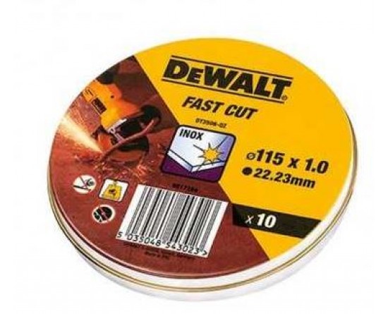 Lata com 10 discos de corte de alto desempenho para aço inox 115 x 1 x 22.23 mm ref.DT3506-QZ DEWALT