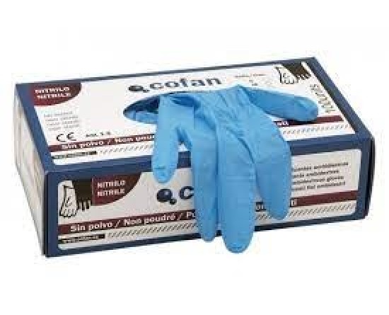 Caixa dispensadora de 100 luvas finas 100% nitrílicas. Uso alimentar compatível. Comprimento 24cm. N.....