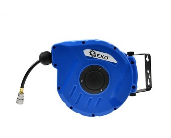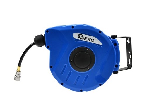 Mangueira pneumática em carretel feita de material de PVC reforçado de alta qualidade. É caracterizada por alta resistência à alta pressão. O carretel é equipado com bloqueio automático impedindo que a mangueira se enrole sozinha, e gancho permitindo que a mangueira seja pendurada na parede.