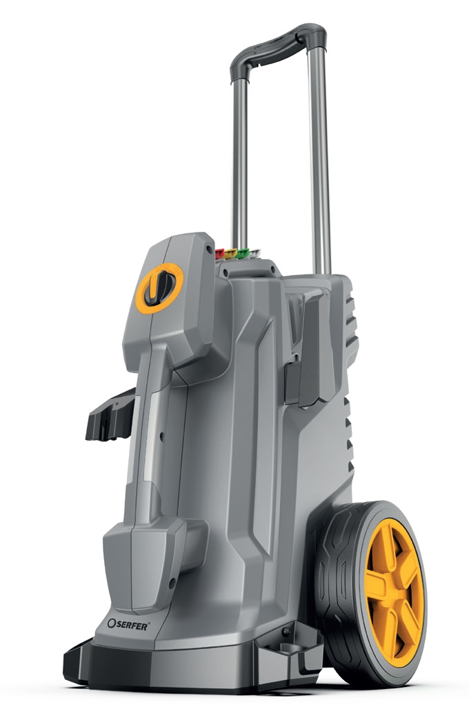 Possui rodas de transporte e cabo de alimentação de 5 metros.